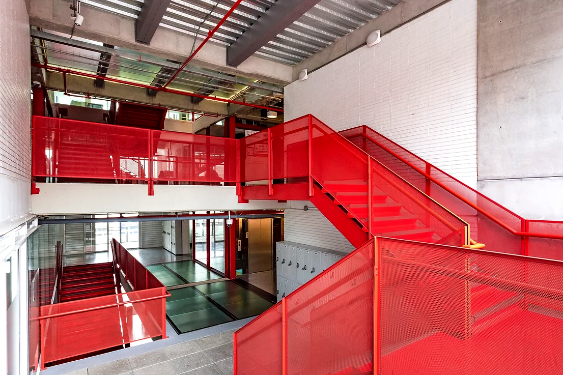 El edificio es tal como es, “sin maquillaje“, con todas las instalaciones a la vista, sirviendo como una herramienta de aprendizaje para los estudiantes. Eficiencia estructural, flexibilidad de cambios en el tiempo y todas las politicas de sostenibilildad, uso de energías pasivas, reciclaje de aguas lluvias y residuos sólidos -entre otros- fueron bandera del proyecto y de la escuela.
